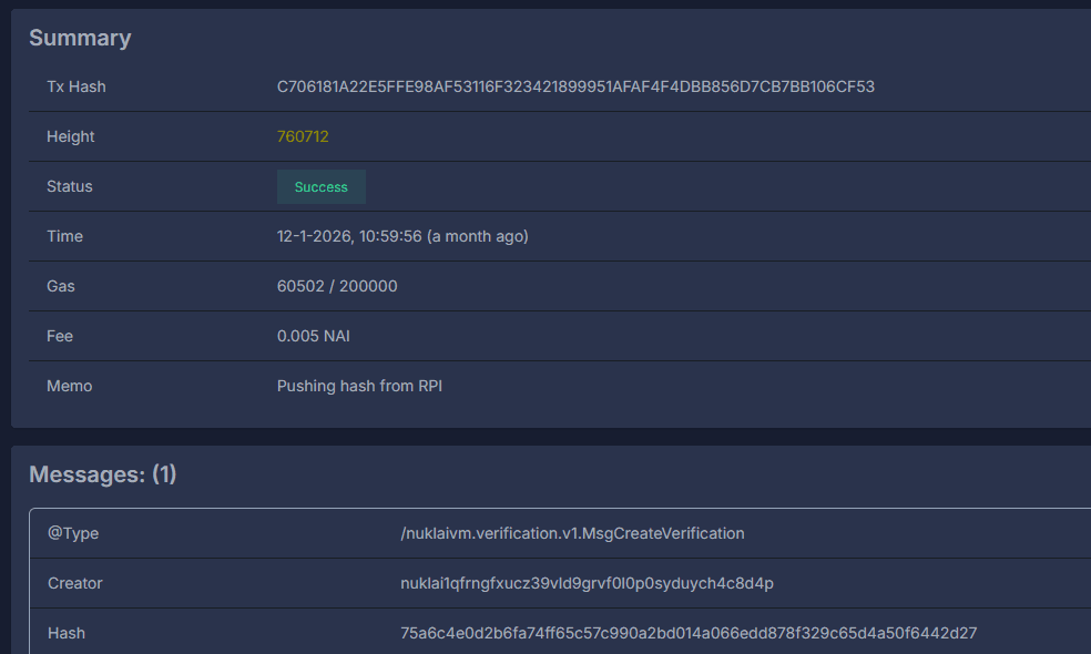 At Nuklai, we've built an IoT proof-of-concept on our Helix blockchain that demonstrates a simple but powerful principle: Store operational data in a traditional database, but anchor its authenticity on-chain.