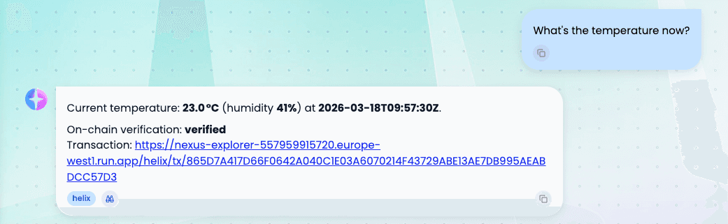 By combining blockchain-based integrity with AI-driven validation, Helix enables real-world use cases such as logistics tracking, healthcare monitoring, and automated workflows built on provable, trustworthy data.